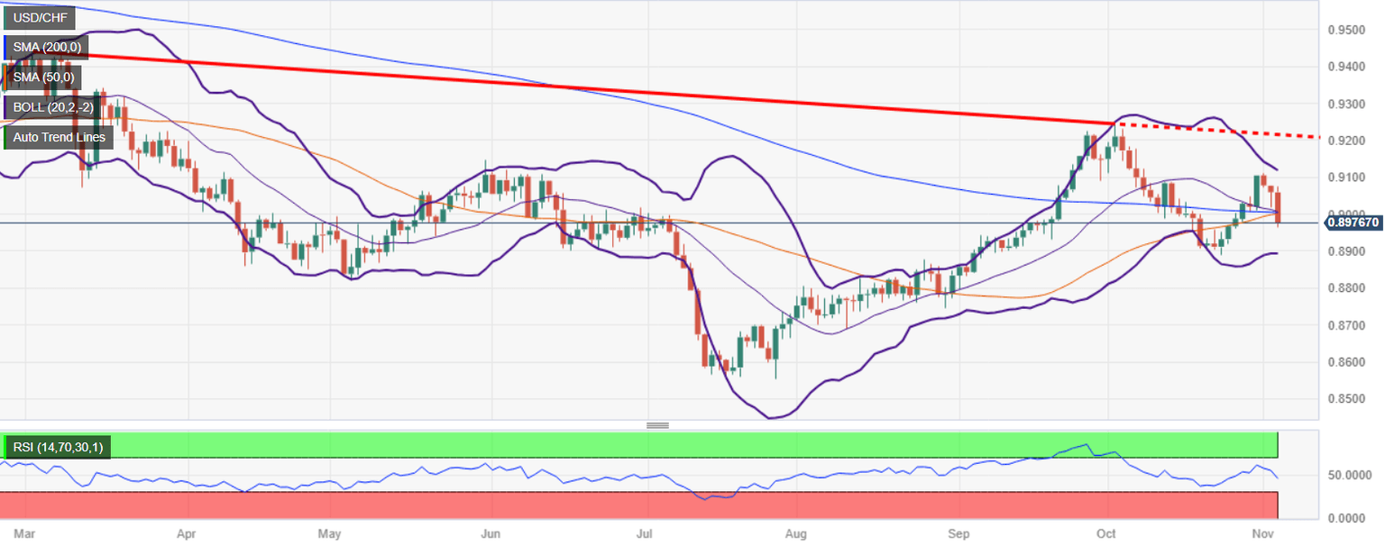 USD/CHF plummets in the mid-North American session on Friday after an employment report in the United States (US) could mark the end of the Federal Reserve (Fed) tightening cycle. Therefore, the US Dollar (USD) remains offered, as investors piled into the Swiss Franc (CHF), as shown by the pair trading at 0.8979, down 0.87%.