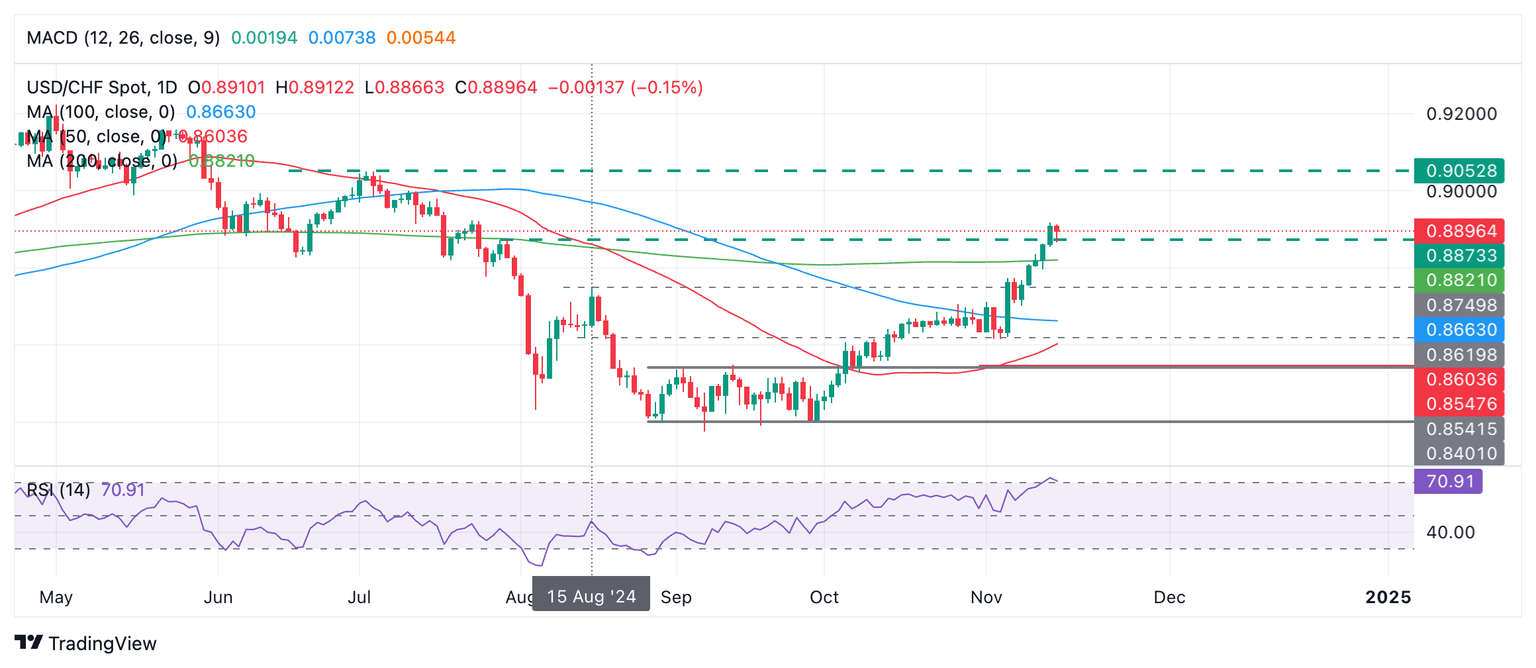 - USD/CHF is in a strong uptrend which keeps making higher highs.