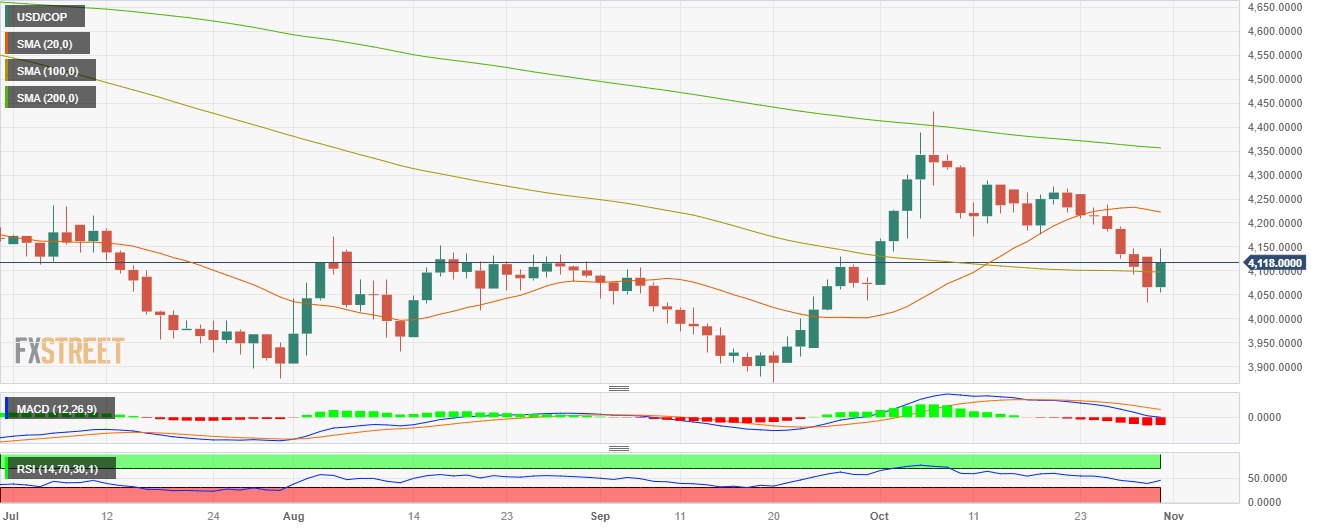 - USD/COP is up by more than 1.50%, towards 4122.5.