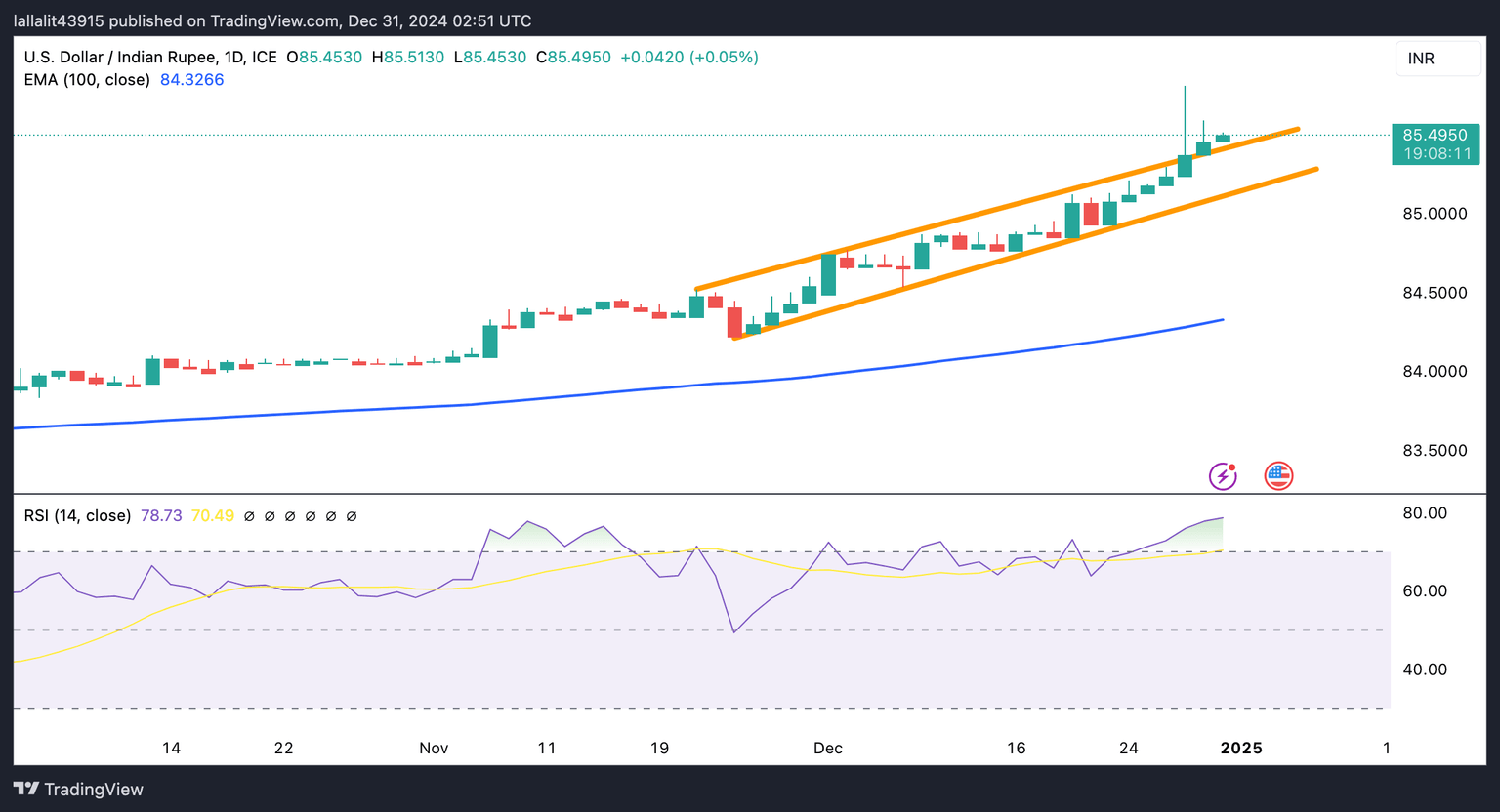 On the bearish side, the resistance-turned-support level of 85.45 acts as a first downside target for USD/INR. Sustained trading below this level could expose 85.00, the round mark. The key contention level is seen at 84.32, the 100-day EMA.