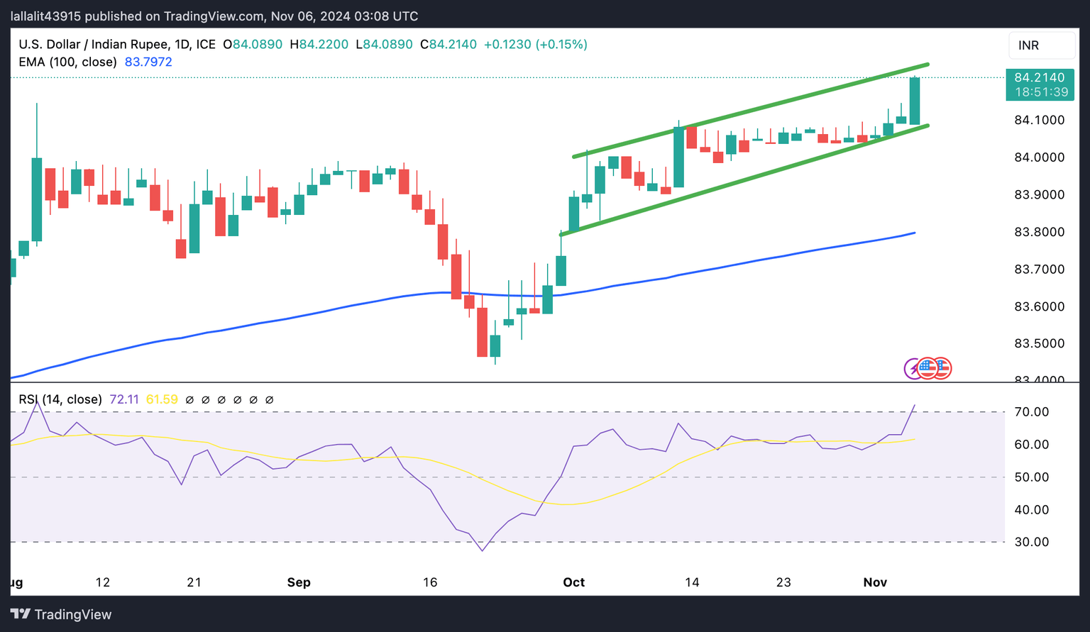 However, the downside risk for the INR might be limited by the routine actions taken by the Reserve Bank of India (RBI) to sell the USD to prevent significant depreciation in the Indian Rupee. Investors will closely monitor the final outcome of the US election ahead of the US Federal Reserve (Fed) meeting on Thursday. Meanwhile, Trump trades continue to rally as his odds improve. Analysts expect that the victory of Donald Trump could push the USD higher.