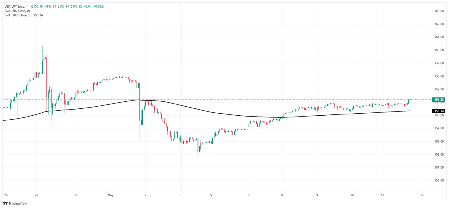 USD/JPY has been slow to recover ground, but progress has been notably one-sided as the pair drifts higher, climbing over the 200-hour Exponential Moving Average (EMA) near 155.36. The pair is testing into chart territory north of the 156.00 handle, and is up nearly 3% from the last post-Yentervention bottom below 152.00.