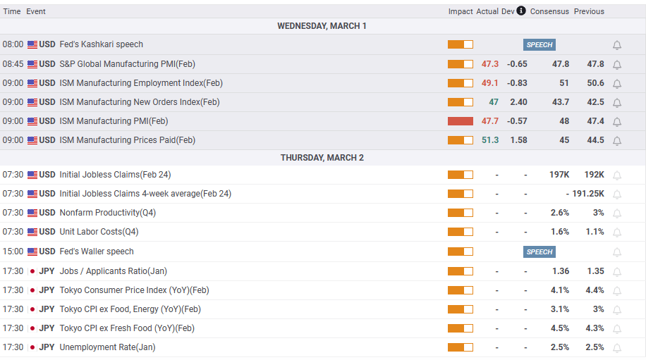 US equities are trading mixed after the release of the ISM. The reading came at 47.7, below estimates of 48 for February, meaning that factories still feel the impact of the Federal Reserve’s (Fed) aggression. Delving into the report, the Prices Index rose to 51.3, past the 45.1 estimates, spurring a knee-jerk reaction in the US Dollar Index (DXY), and the USD/JPY spiked to 136.31.