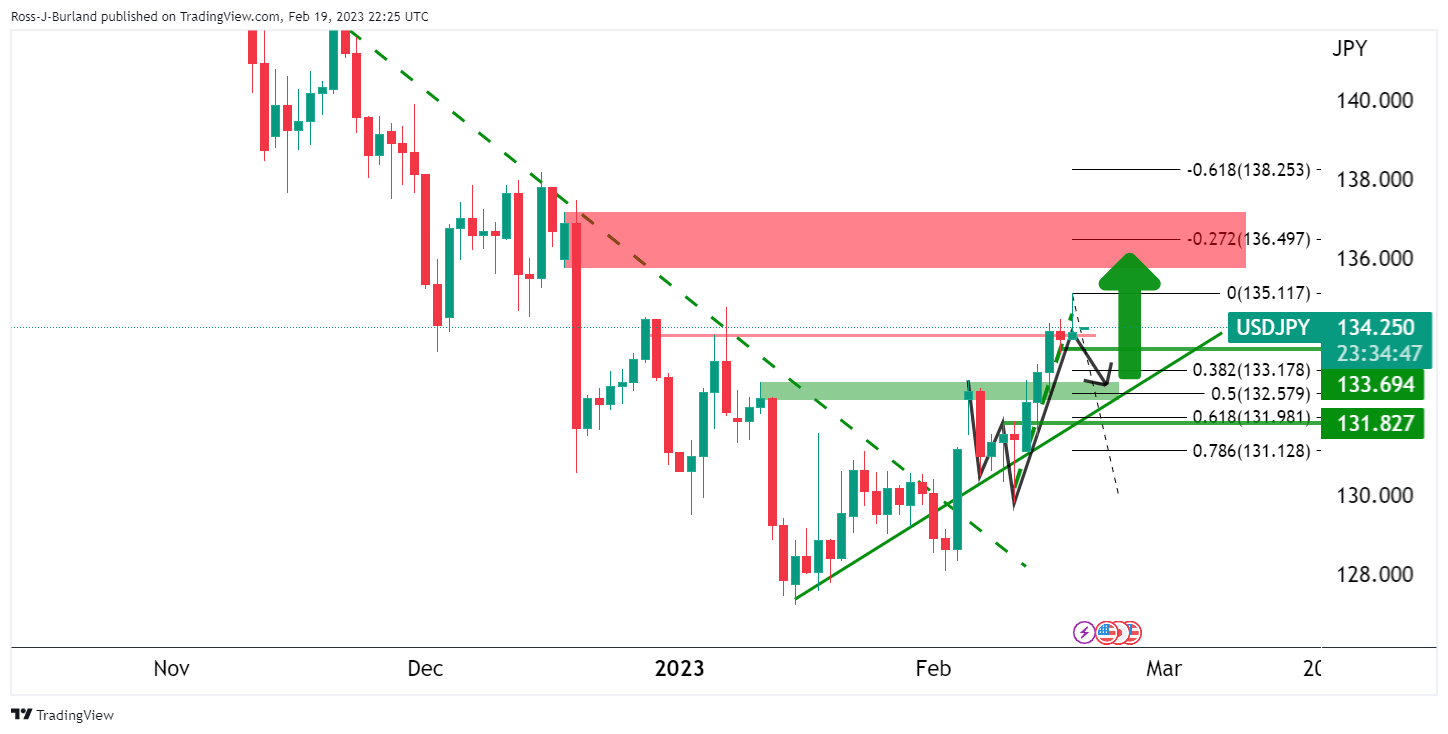 - 132.50 support could see a move from the bulls again and a continuation would initially target 135.50/137.20.