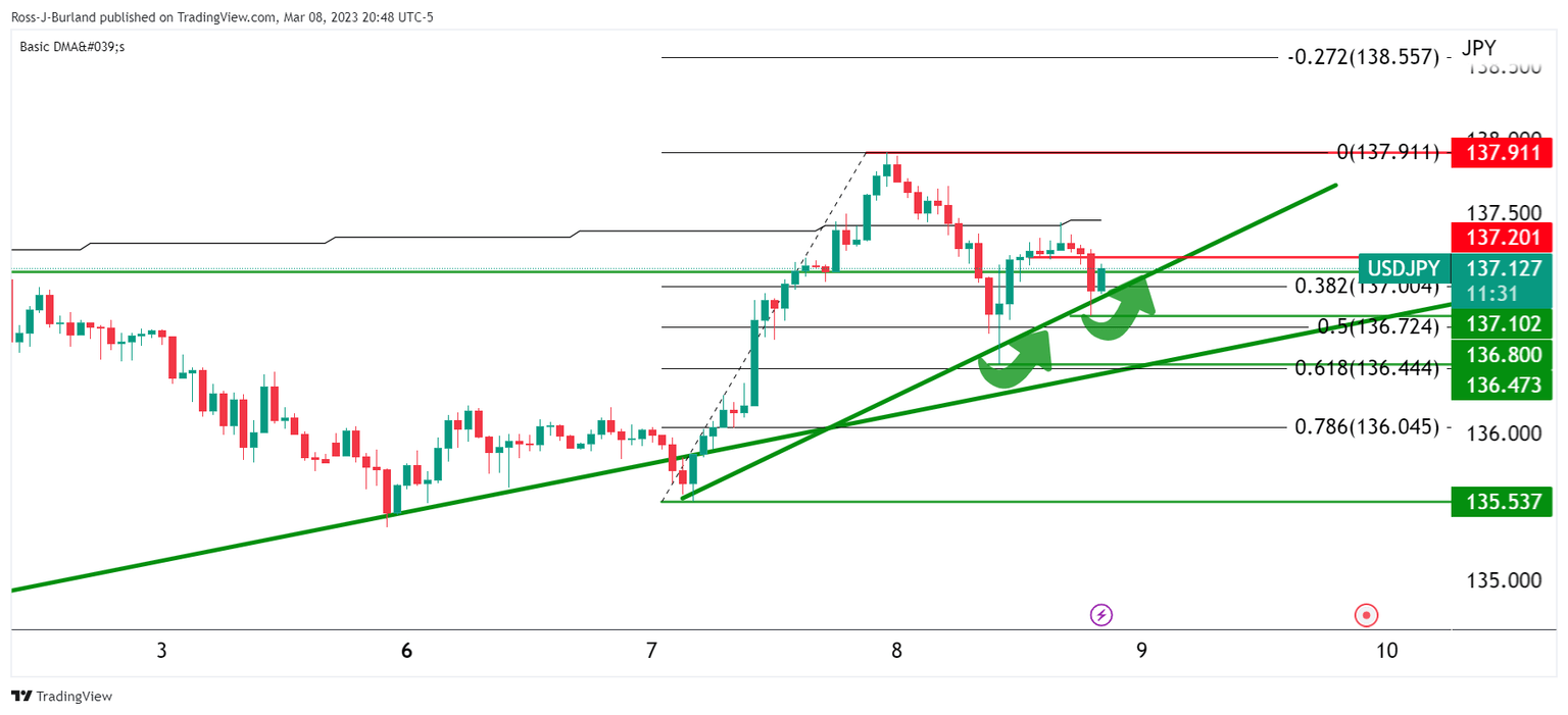 A meanwhile micro trendline has formed on the hourly chart and bulls appear to be committing to the price on the front side so far.
