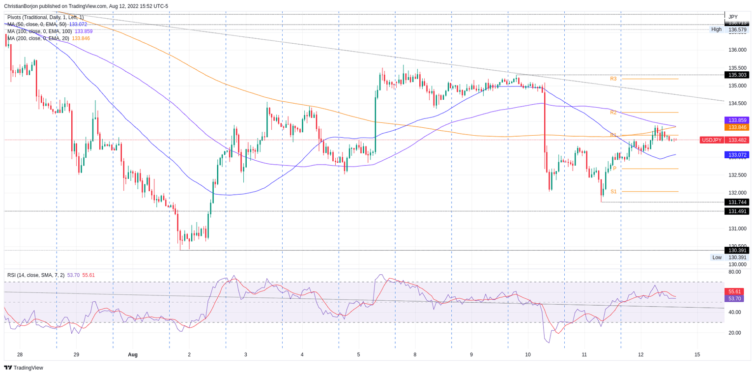 The USD/JPY slightly climbed on Thursday following the release of the University of Michigan Consumer Sentiment for August, which exceeded estimations, but consumer expectations of inflation remained mixed. Nevertheless, it was not an excuse for investors seeking return, shifting toward riskier assets, to the detriment of safe-haven assets. At the time of writing, the USD/JPY is trading at 133.48 above its opening price by 0.39%.