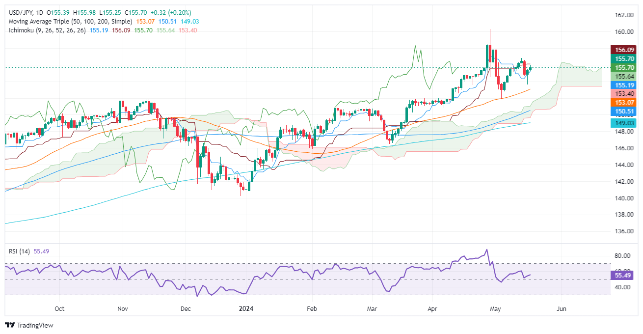 - USD/JPY maintains uptrend, trading at 155.66 after hitting a daily low of 155.25.