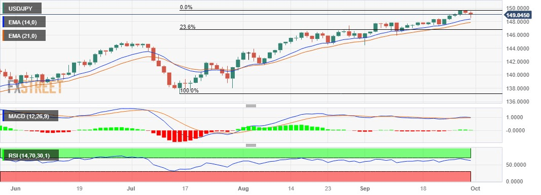 However, there is a resistance region around the monthly high at 149.70, followed by the 150.00 psychological level that may pose a challenge for further gains.