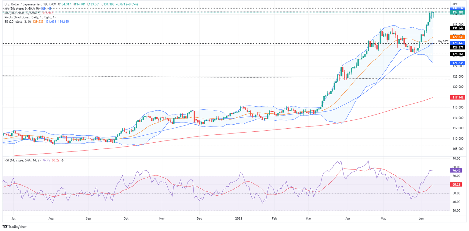 USD/JPY Price Analysis: Failure at 135.00 to pave the way for a pullback towards 131.00