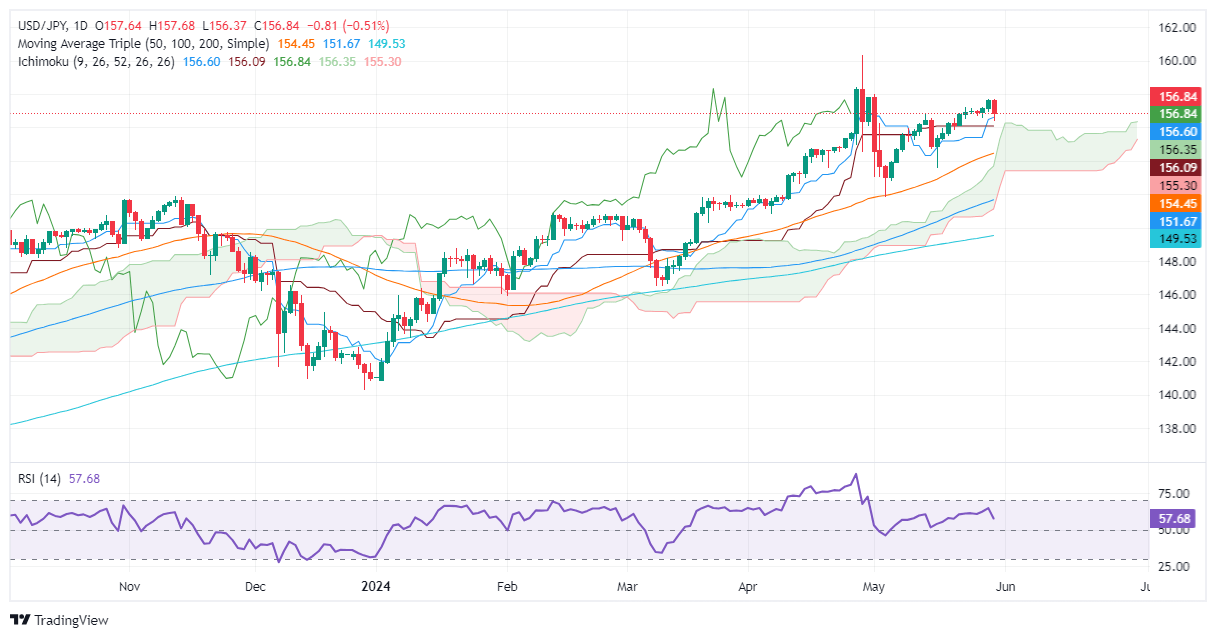 The USD/JPY dropped from weekly highs of 157.71 on May 29 after data from the United States (US) painted an ongoing economic slowdown, which sent US Treasury yields plunging. Consequently, the Greenback is feeling the pain, as the pair is trading at 156.83, down 0.30%.