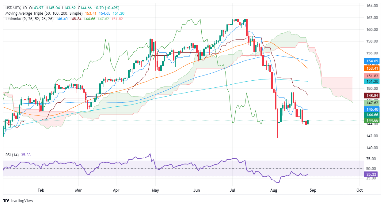 - Key resistance at 145.00 crucial for bullish continuation; next targets at 146.39 (Tenkan-Sen), 146.48, and 148.84 (Kijun-Sen).