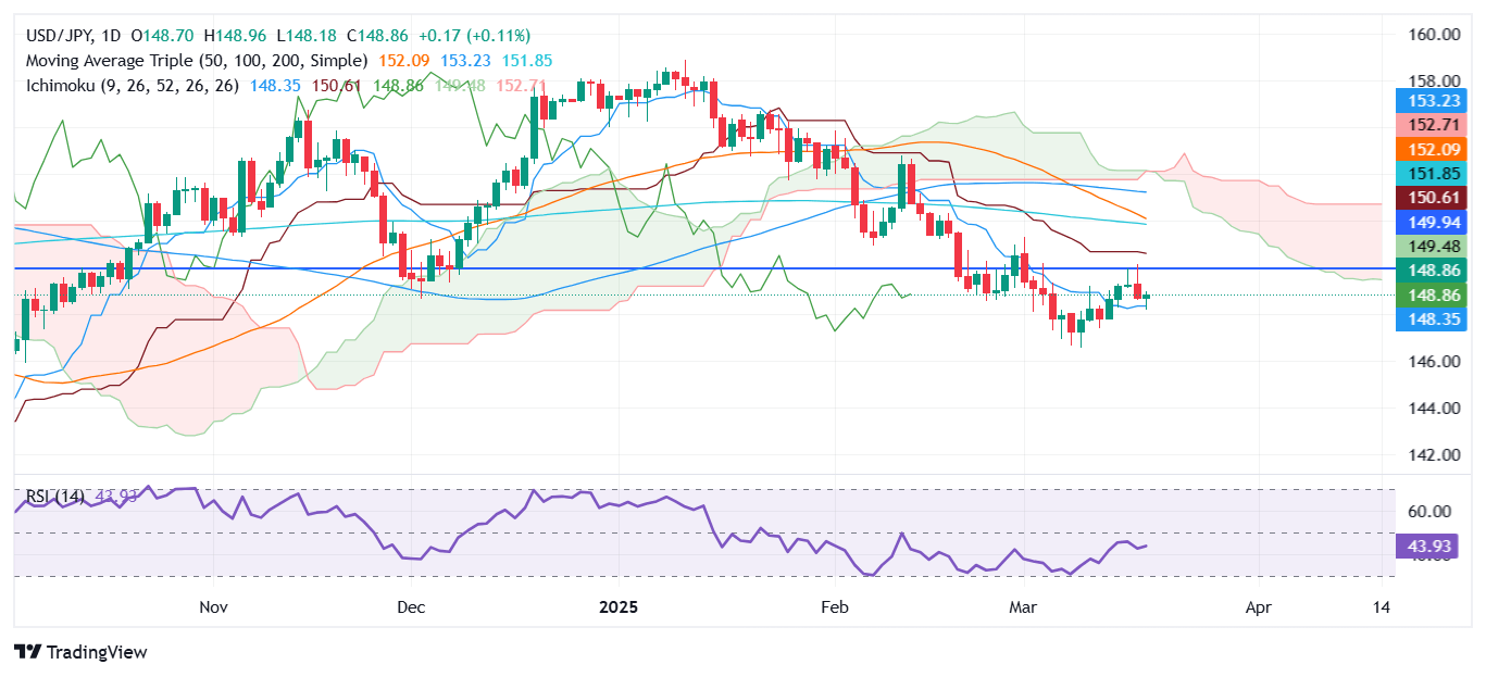 Conversely, failure to claim 149.00 could lead to sellers challenging the Tenkan-sen at 148.34. A daily close below the latter opens the path for further downside, with key support levels being the 148.00 mark and the March 11 swing low of 146.54.