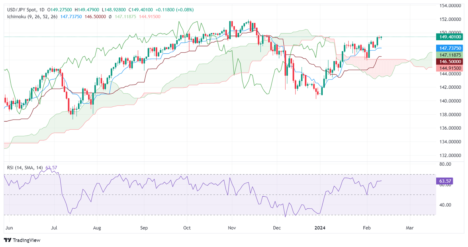 Regardless of the data, the Bank of Japan (BoJ) has expressed is in no rush to normalize policy until wages sustainably pick up. Therefore, further USD/JPY upside is seen, and traders would look to test the 150.00 figure.