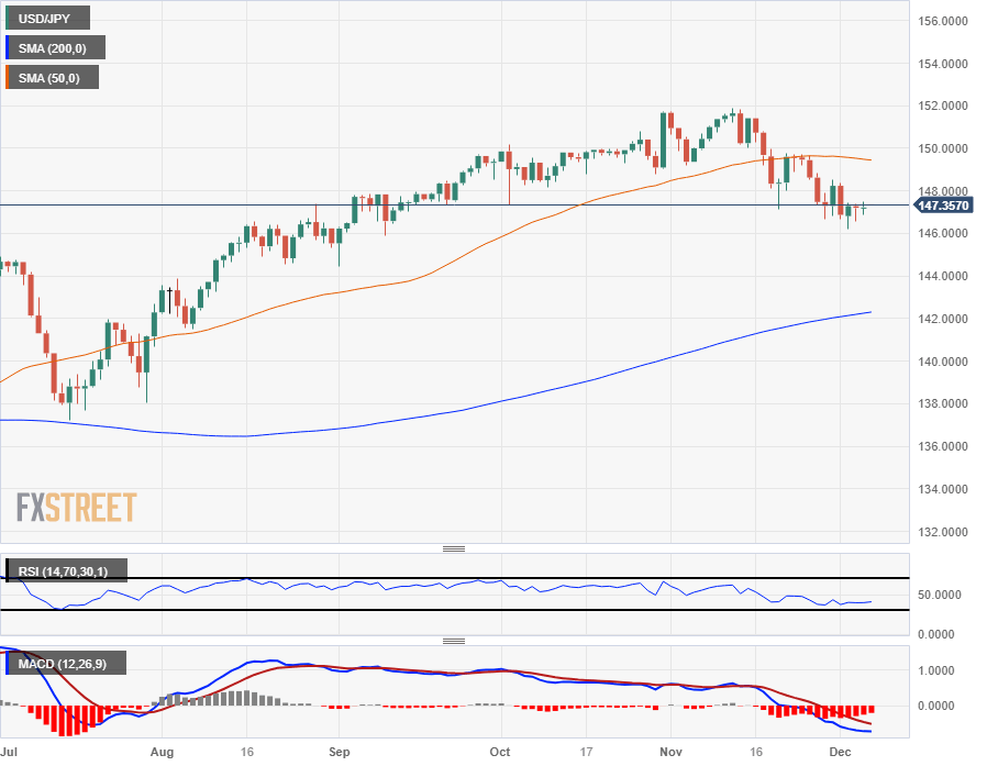 The USD/JPY is seeing thin, tight trading near the 147.50 level, with near-term bids getting propped up north of 146.00 while also constrained by the 148.00 handle to the topside.