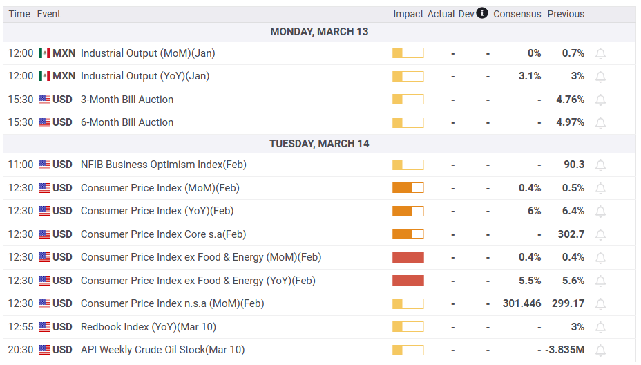 The lack of economic data in the Mexican docket keeps traders leaning on sentiment news. US Regulators shut down the Silicon Valley Bank, as the FDIC has seized the bank. Read more here!