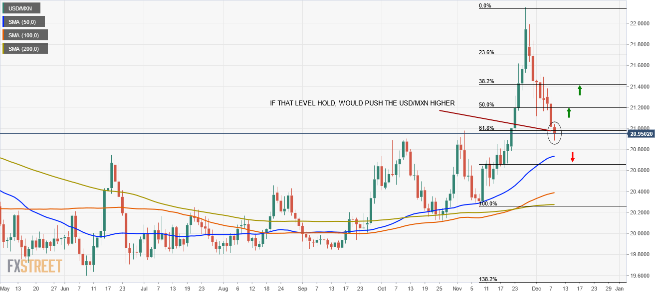 - USD/MXN Price Forecast Has an upward bias unless MXN bulls hold the exchange rate under 21.00.