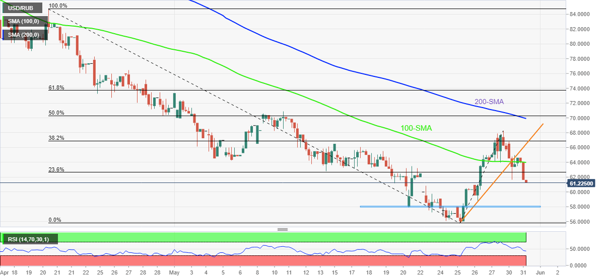 USD/RUB Price Analysis: Bears retake control with eyes sub-60.00 region
