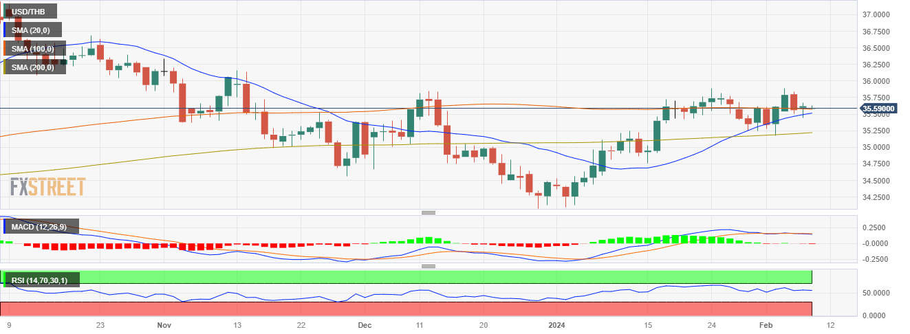 In Wednesday's session, the USD/THB was seen up 0.15% at 35.60 after touching a low at 35.45. Considering both the Federal Reserve (Fed) and Bank of Thailand’s stances, the former’s approach which seems to point to delaying cuts limits the downside potential for the pair, as the latest movements could be seen as buyers taking a breather after last week’s rally.
