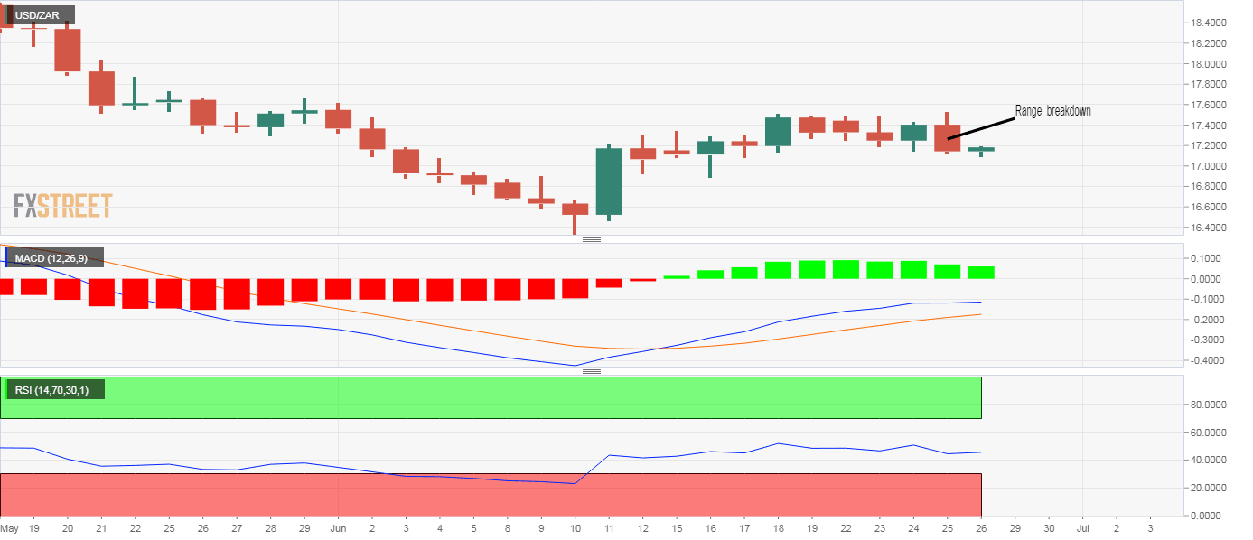 - USD/ZAR looks south with a range breakdown on the daily chart.