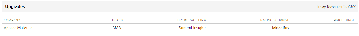 Applied Materials (AMAT): The chip tools maker on Thursday forecast first-quarter revenue above market estimates