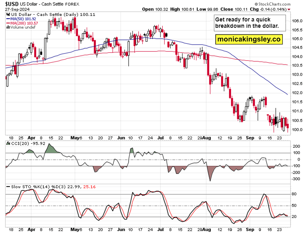 Let‘s check bonds and the dollar next – and then the S&P 500 chart that I use in addition to the breadth one or sectoral views, ratios and similar premium featured views.
