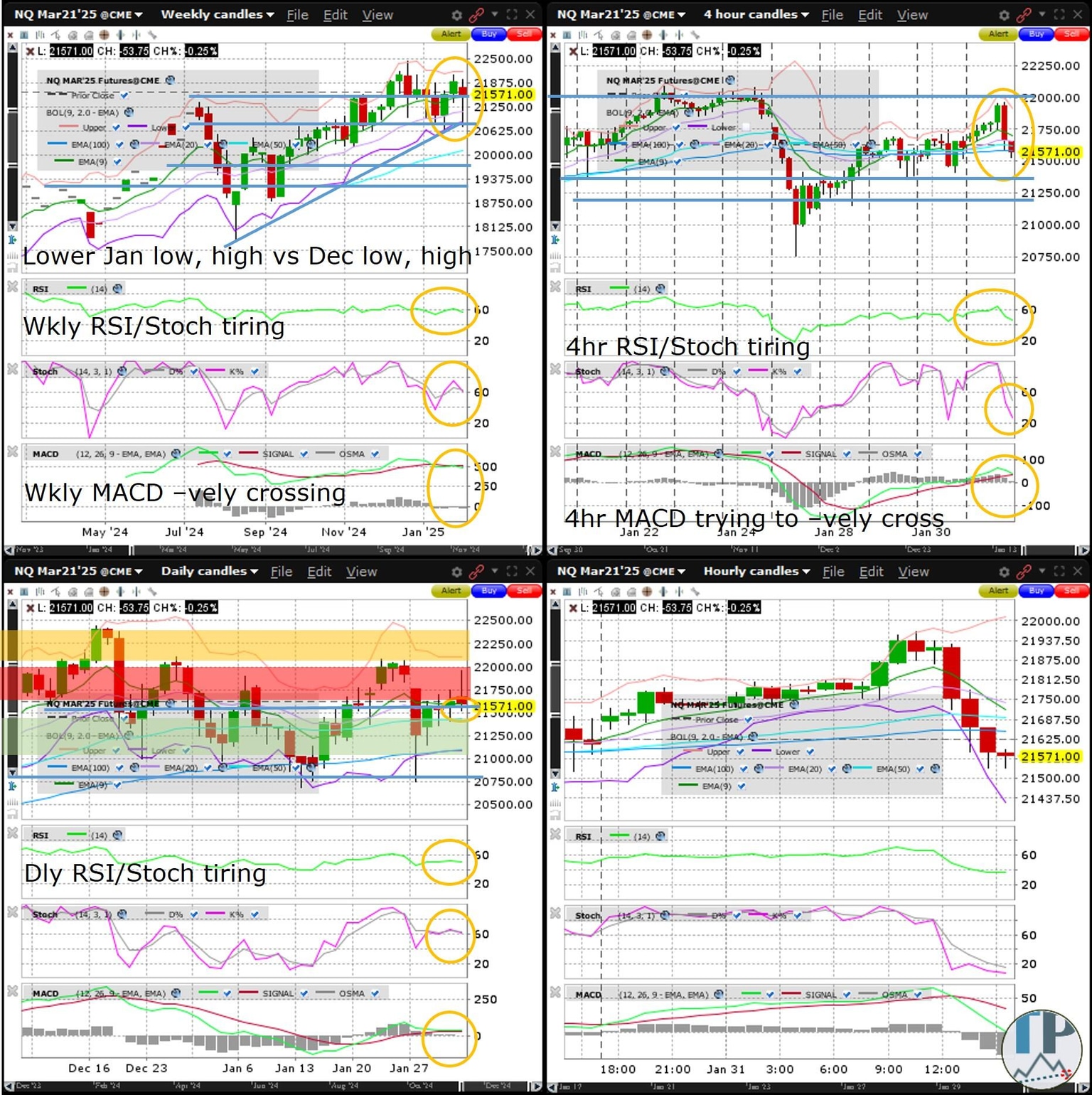 Nasdaq100 (NQ) edged lower Friday after strongly reversing from the intraday high in the US afternoon. With the lower January low and high vs the December low and high, any test of the January high in February is now only moderately but increasingly unlikely. Before bears get excited, NQ will need to break below last Monday’s low, which based off Friday’s strong intraday reversal, is moderately likely by the end of this week. The January Gravestone reversal from its upper shadow high together with the early stages of a February Doji further suggest that NQ may have made its high for the major bull market extension that began late 2022. Watch for more volatility Monday with the US ISM manufacturing PMI, Tuesday with the US JOLTS job openings, Wednesday with the US ADP Non-Farm employment change and US ISM Services PMI, Thursday with the US unemployment claims and Friday with the highly anticipated US average hourly earnings, non-farm employment change, and unemployment rate.