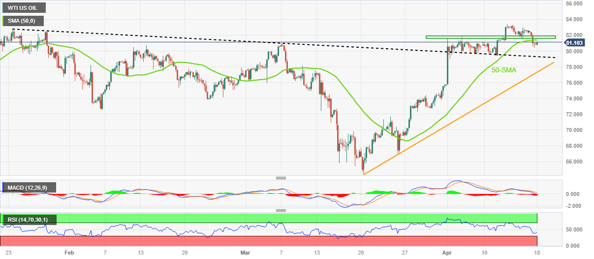 WTI Price Analysis: 50-SMA prods China data-led recovery around $81.00
