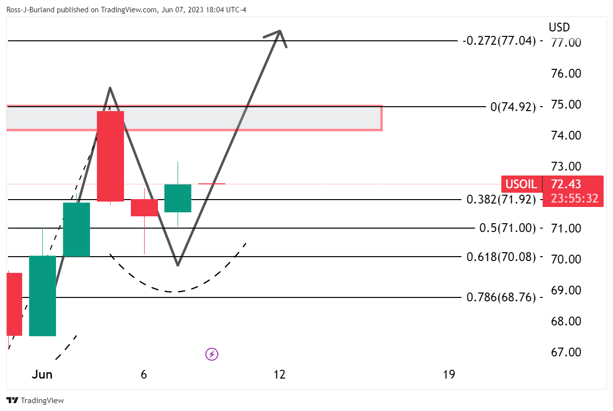 - WTI bulls looking to engage in anticipation of a bullish continuation.