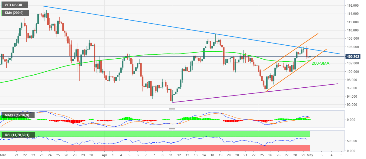 Alternatively, WTI sellers will wait for a clear downside break of the $102.60 support confluence for fresh entry.