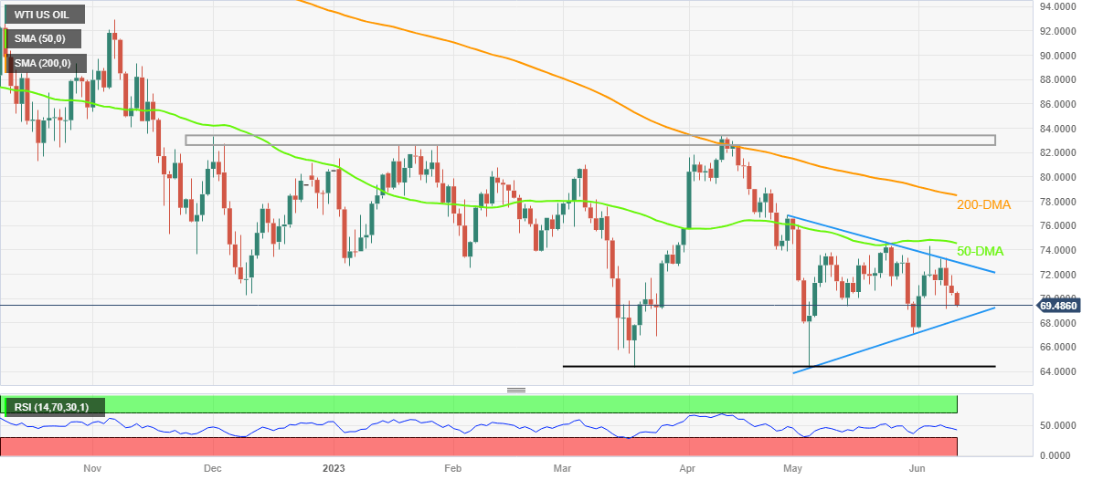 WTI Price Analysis: Oil bears approach $68.30 support within six-week-old triangle