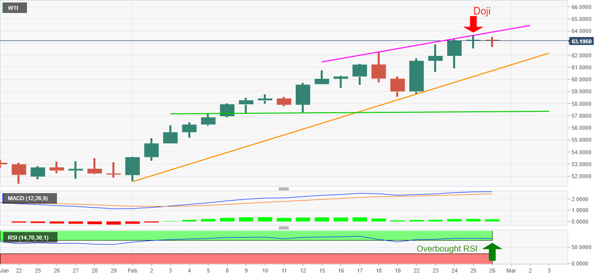 WTI Price Analysis: Thursday’s Doji keeps oil sellers hopeful around $63.00