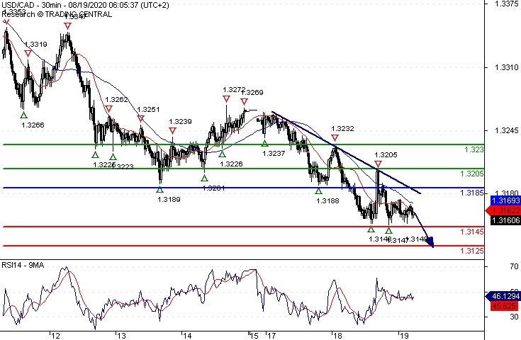 A break below 1.3145 would trigger a drop towards 1.3125.