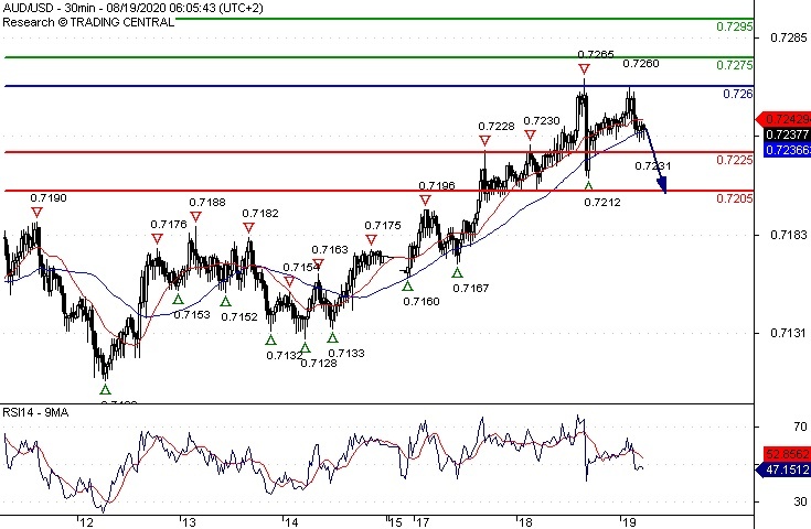 Short positions below 0.7260 with targets at 0.7225 & 0.7205 in extension.