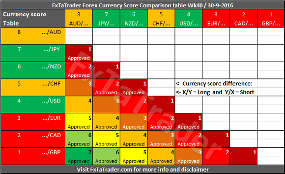 - First of all only better classified currencies in combination with weaker classified currencies are "Approved" when there is a Currency Score difference of at least 1 in the current week.