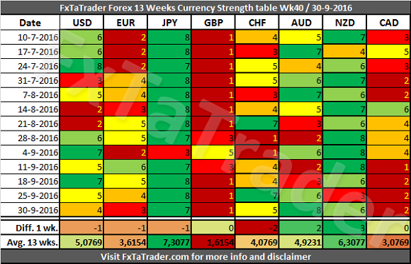 Forex Strength and Comparison for Week 40