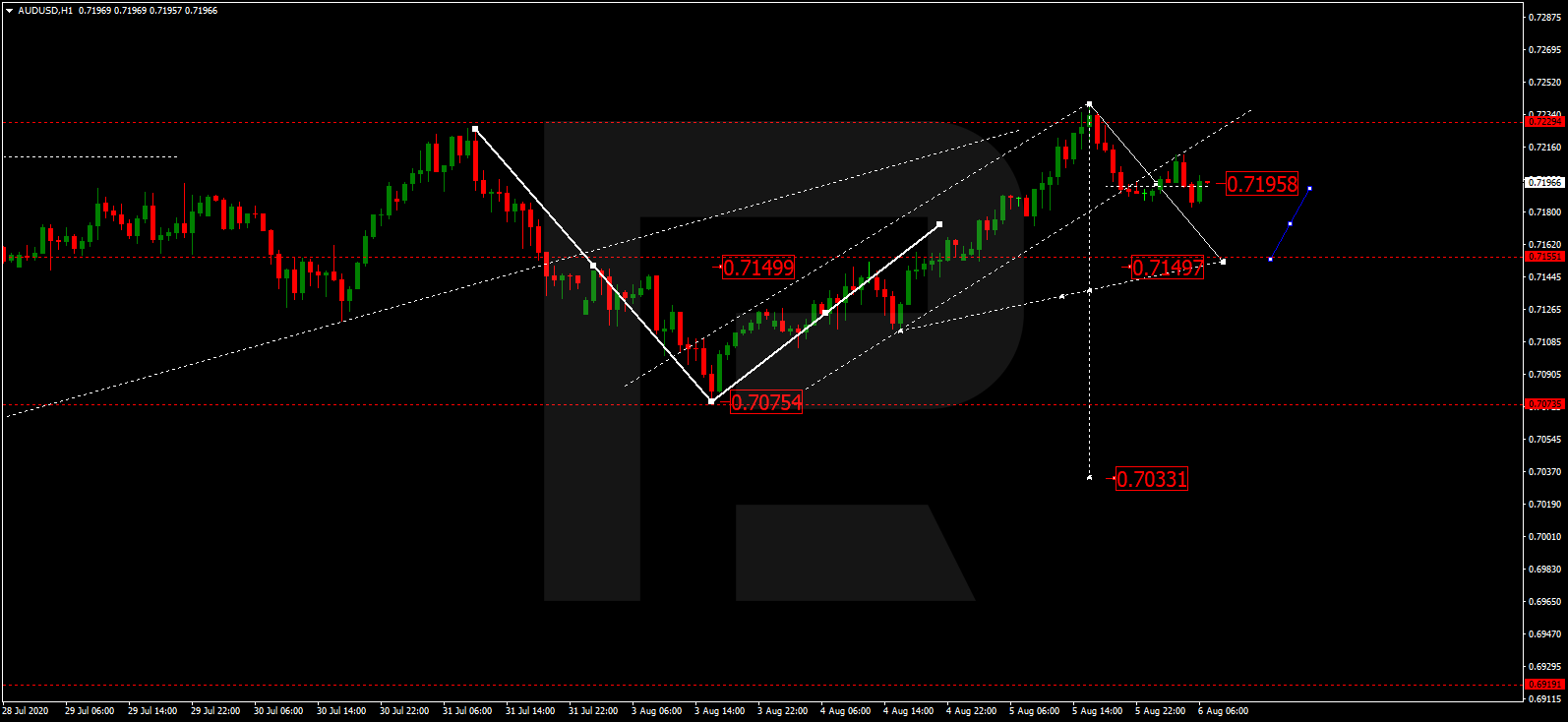 After completing another ascending structure at 0.7233, AUDUSD is expected to fall towards 0.7149. Later, the market may start another growth to reach 0.7195. In fact, the instrument continues forming a wide consolidation range around 0.7149.