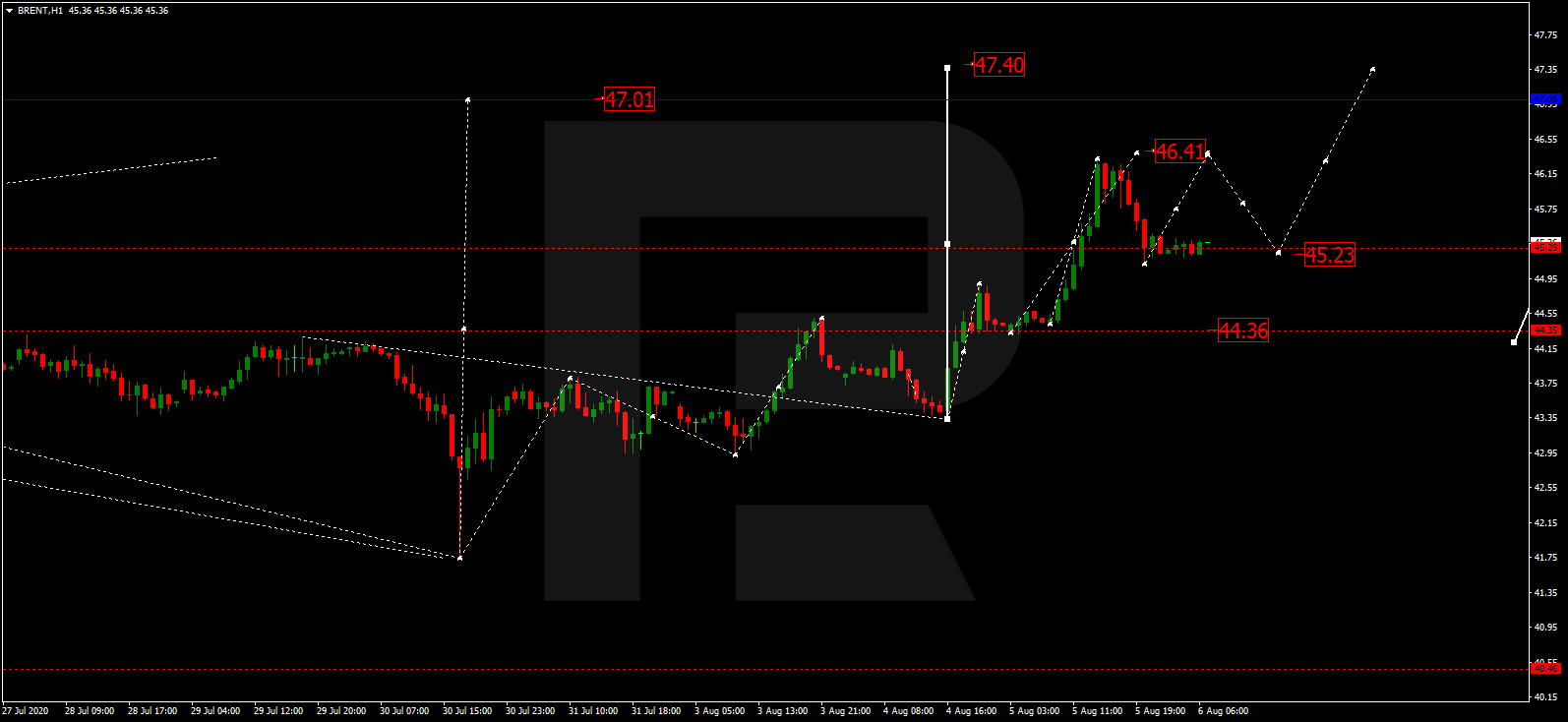 After reaching 46.40 and then finishing the correction at 45.25, Brent is still trading upwards. Possibly, today the pair may grow to reach 46.46 and then form a new descending structure towards 45.40. Later, the market may resume trading upwards with the target at 47.44.