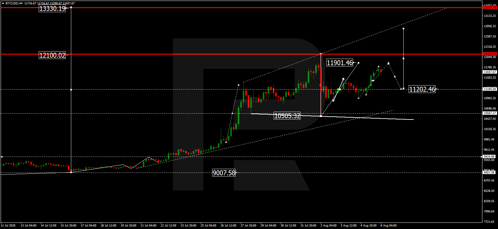 BTC/USD is still growing; it has broken 11500.00 and may continue moving upwards to reach 11900.00. After that, the instrument may form a new descending structure towards 11200.00. In fact, the market continues forming a wide consolidation range around 11200.00.