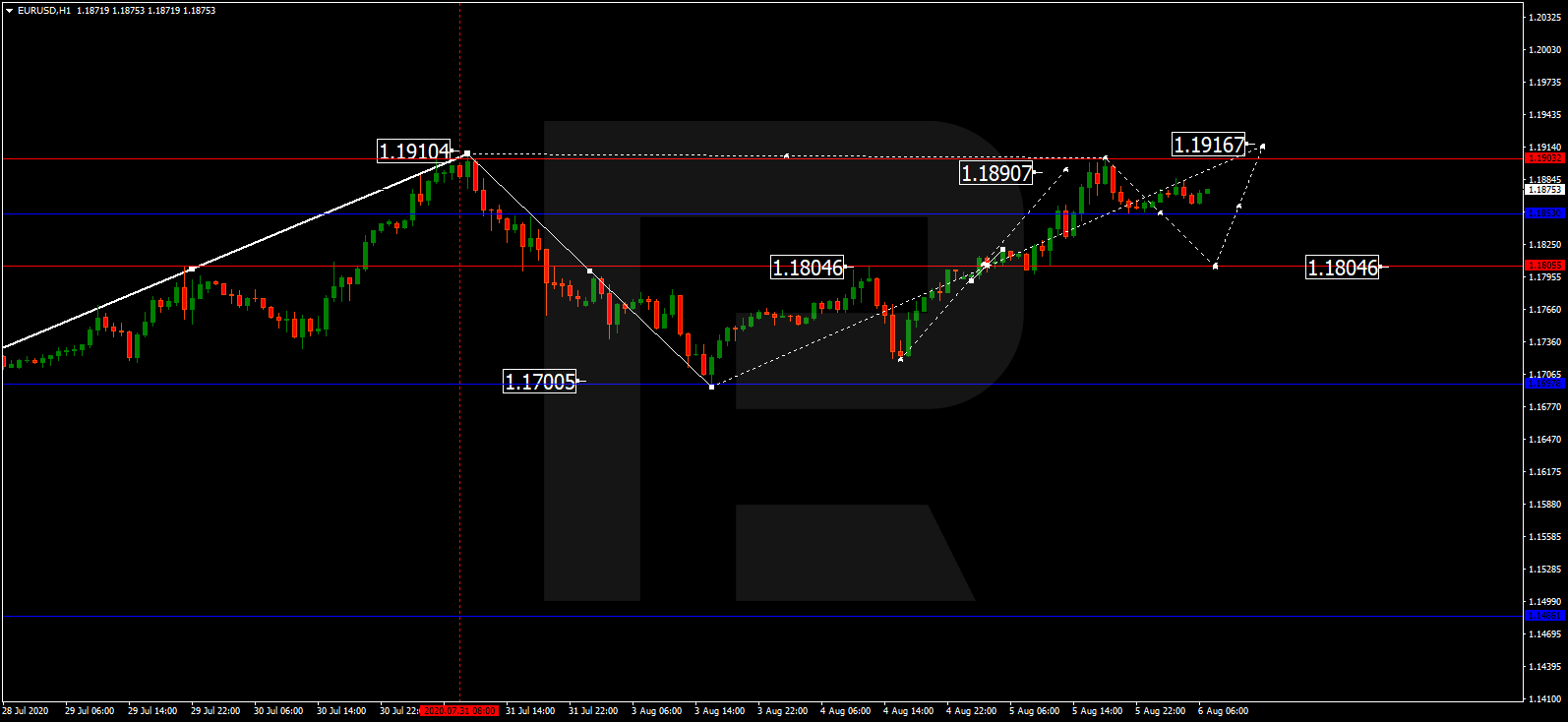 After reaching 1.1805 and then breaking it to the upside, EURUSD has reached 1.1904. Possibly, the pair may correct towards 1.1805 and then form one more ascending structure with the target at 1.1916. In fact, the market continues forming a wide consolidation range around 1.1805.