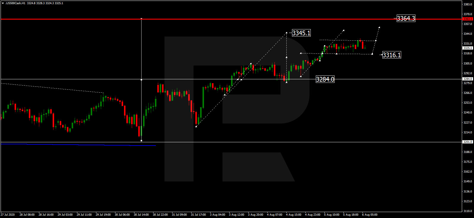 After breaking 3316.1 and forming a new consolidation range above this level, the S&P index is trading upwards with the target at 3345.1. Later, the market may start a new correction towards 3284.0.