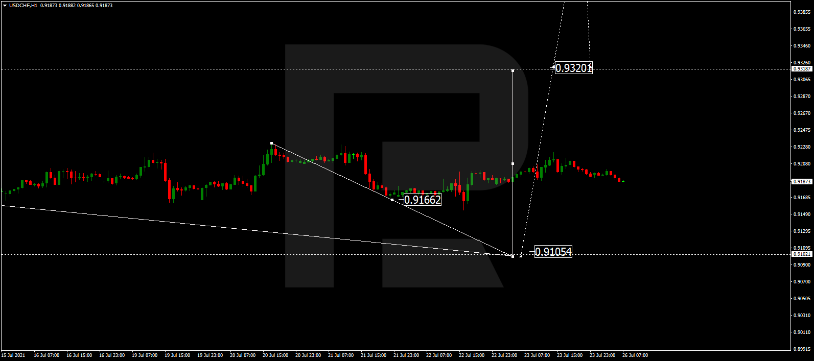 USDCHF is still consolidating around 0.9200. Possibly, today the pair may correct towards 0.9105 and then form one more ascending structure with the target at 0.9320.