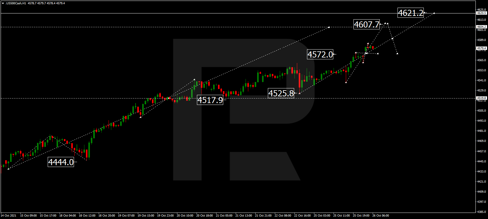 The S&P index continues trading upwards; it has already reached 4672.0 and is currently consolidating around this level. Possibly, the asset may resume growing to reach 4607.7. On the other hand, if the price falls and breaks 4565.0, the instrument may start a new correction with the target at 4517.9.