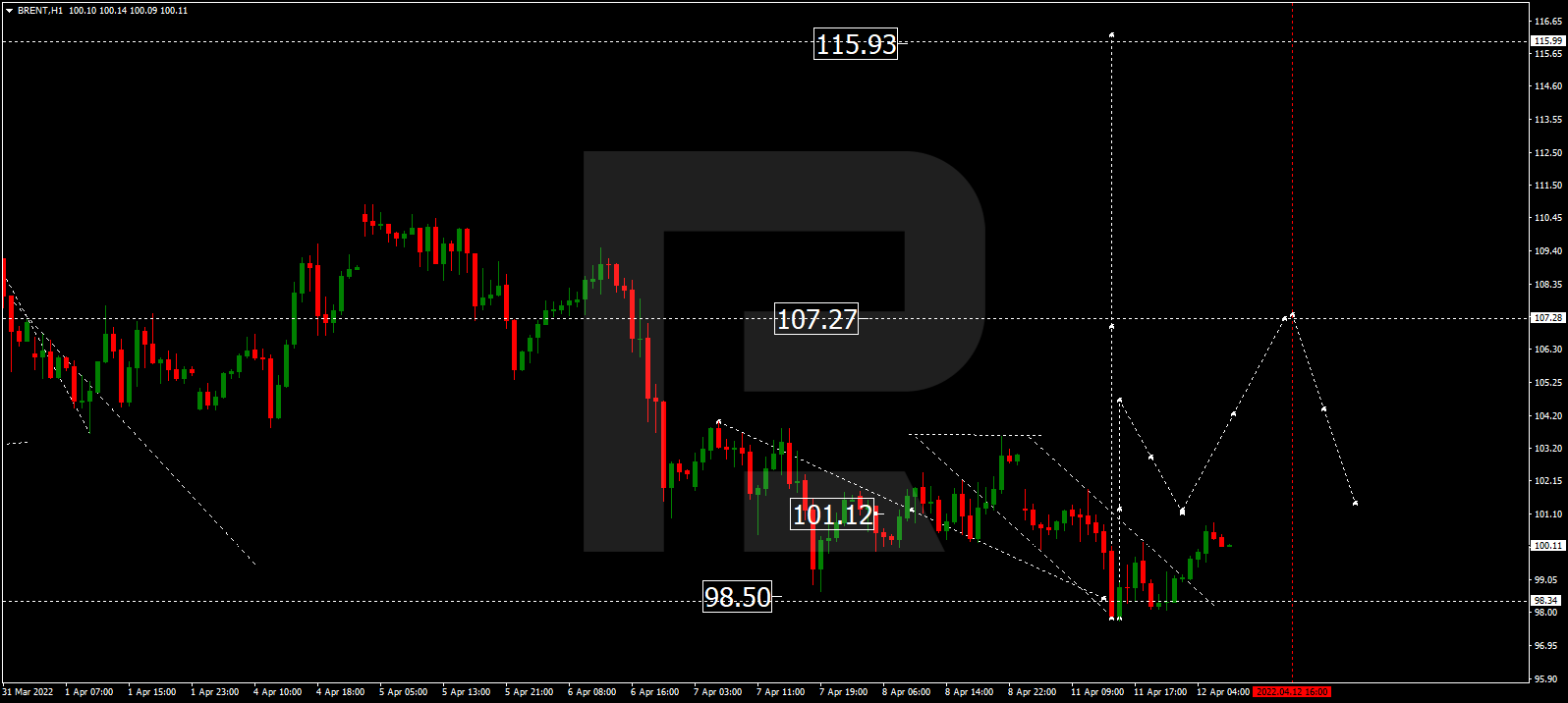 Brent is consolidating above 98.30. Possibly, today the asset may break the range upwards and form one more ascending structure to break 104.30. Later, the market may continue moving within the uptrend with the first target at 107.30.