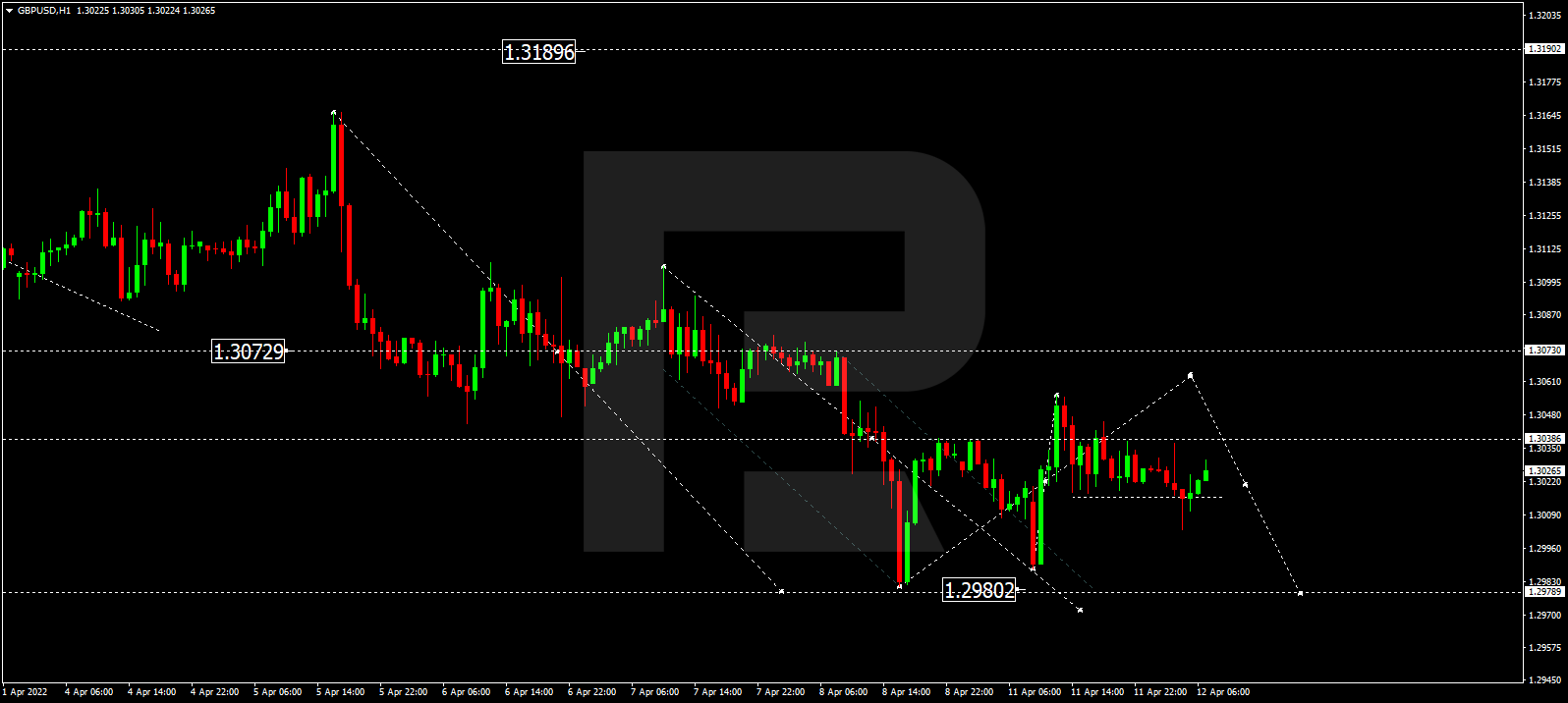 GBP/USD continues consolidating around 1.3030. Possibly, the pair may expand the range up to 1.3061 and then form a new descending structure with the target at 1.2977.