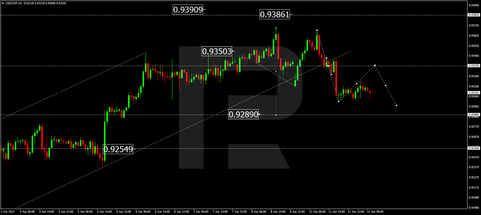 USD/CHF continues falling towards 0.9300. Later, the market may start another correction to reach 0.9333 and then resume moving downwards with the target at 0.9288.