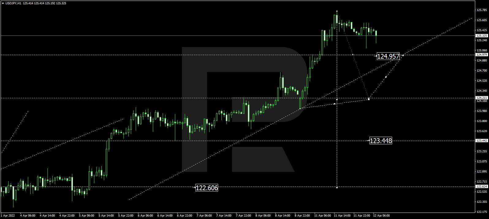 USDJPY is still consolidating around 125.30. Today, the pair may break the range to the downside and resume trading downwards to break 124.95. After that, the instrument may continue falling with the first target at 124.21.