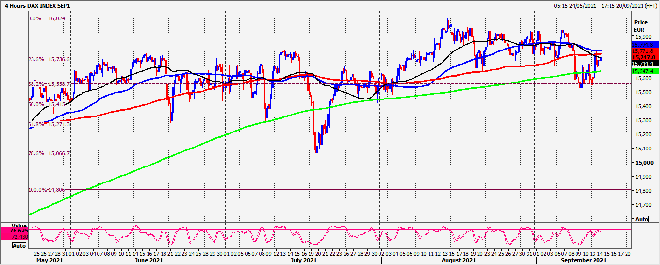 Dax 30 September topped exactly at resistance at 15780/800. Shorts need stops above 15830.