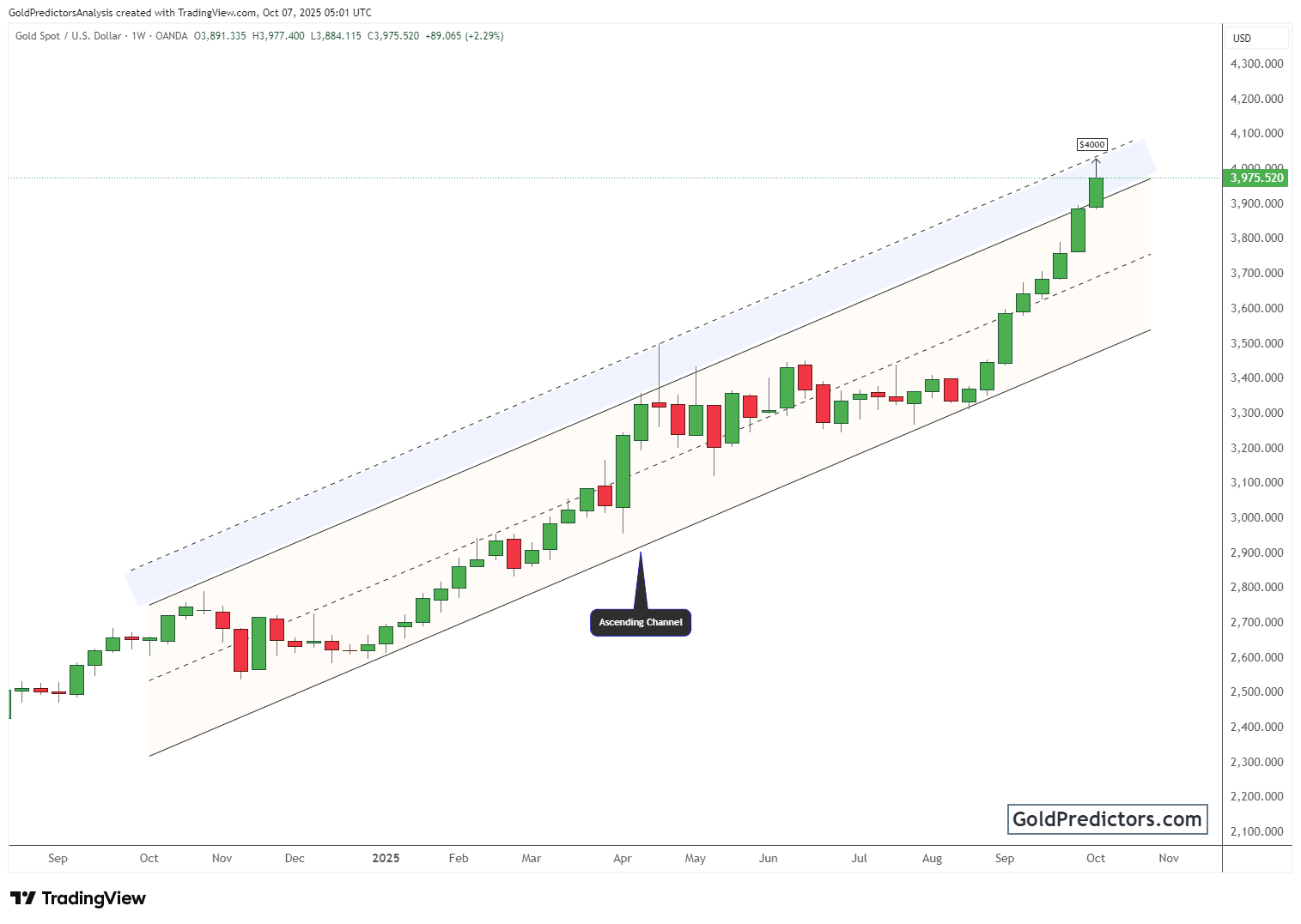 Gold approaches $4.000 as ascending channel signals ongoing uptrend