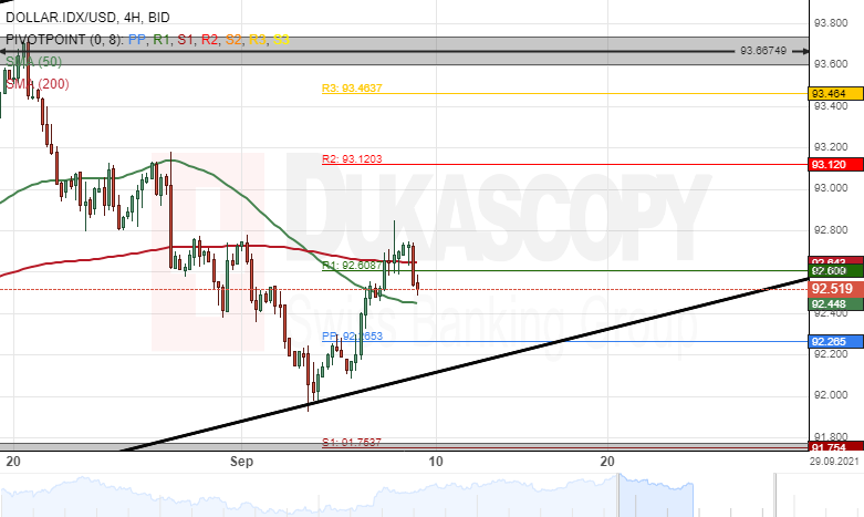 The DOLLAR.IDX/USD pair bounced off the lower line of an ascending channel pattern at the 92.00 level on September 3. As a result, the dollar index, which measures the US Dollar against a basket of major currencies, has edged higher by 77 pips or 0.84% since last week's trading sessions.
