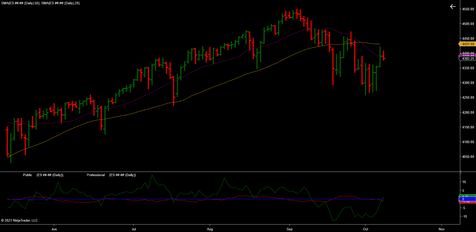 If accumulation remains and the price starts building the base above daily MA50, the market will attempt to renew an uptrend. On the other hand, if futures lose accumulation and price gets rejected at MA50, SP500 might continue to drift to the downside. The cycles forecast bottom in October. But we need a price action confirmation.